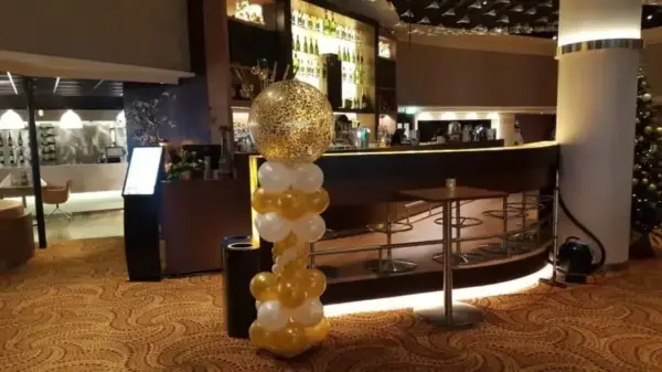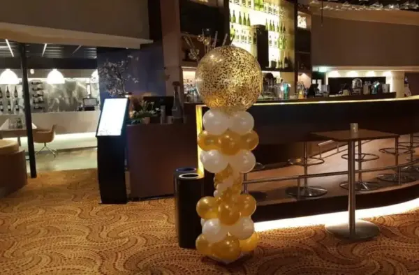 Hoogte ballonpilaar met confetti is circa 2,20 mtr.