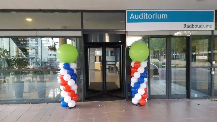 Deze ballonpilaar met eigen opdruk is leverbaar in verschillende soorten kleuren . Transport niet bij prijs inbegrepen.