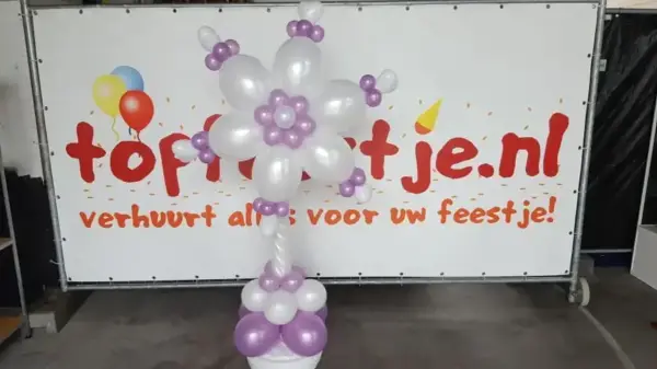 Hoogte ballonpilaar met hartjes circa 1,60 mtr.