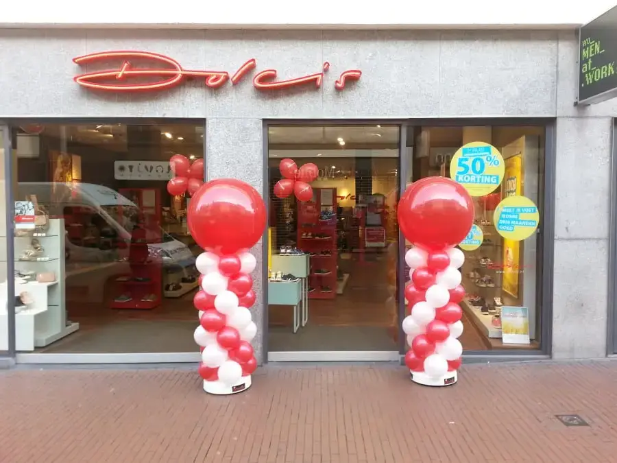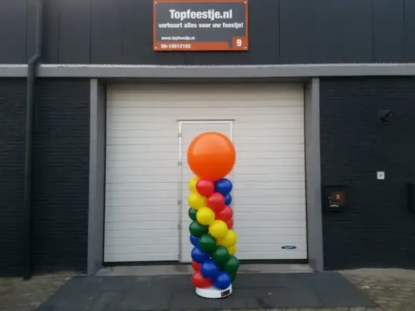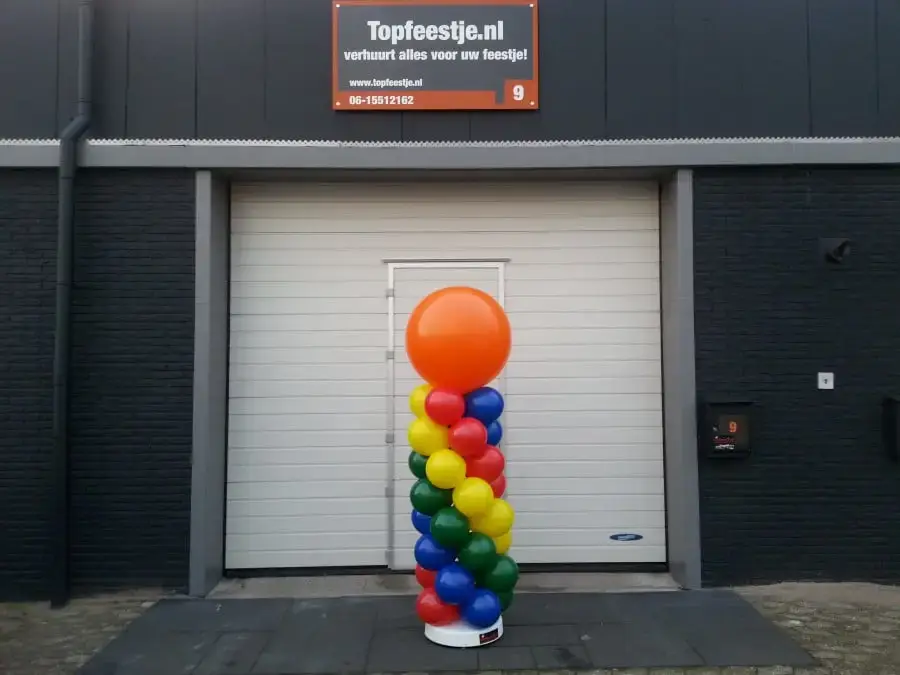 De ballonpilaar met topballon is leverbaar in verschillende soorten kleuren en maten. Transport niet bij prijs inbegrepen.