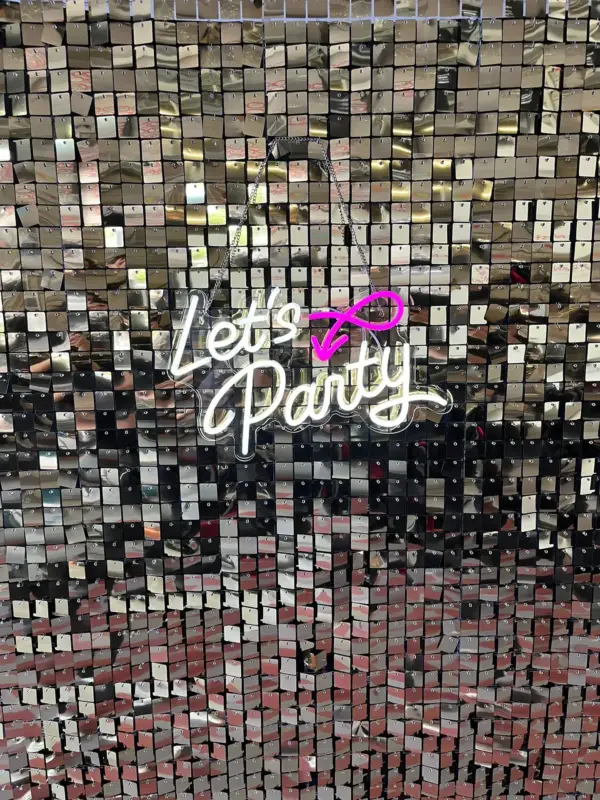 Geen topfeestje is compleet zonder deze let’s party neon lamp. Leuk bij bijvoorbeeld een shimmerwall, of flowerwall. Breed 42 cm Hoog 27 cm