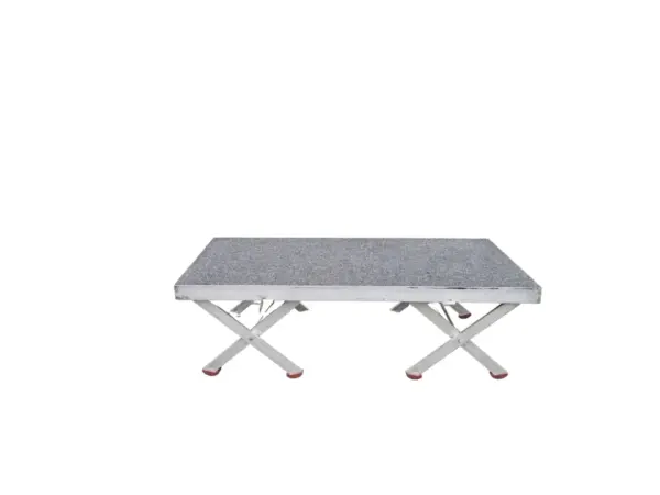 Dit podium deel is in 3 hoogtes verstelbaar 40, 60 en 80 cm. Podium deel is 2 x 1 meter. Podium is te koppelen met andere podium delen. Hierdoor maakt u uw podium op iedere gewenste maat.