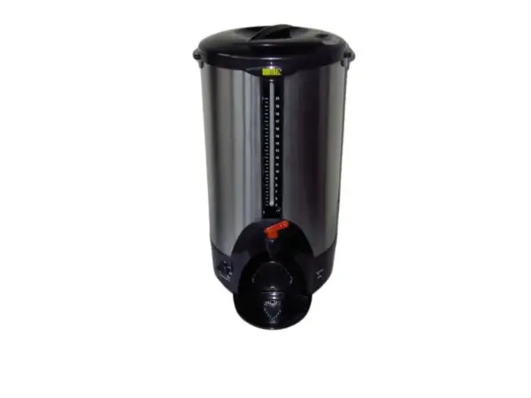Deze 10 liter waterkoker kunt u zelf op de gewenste temperatuur instellen.